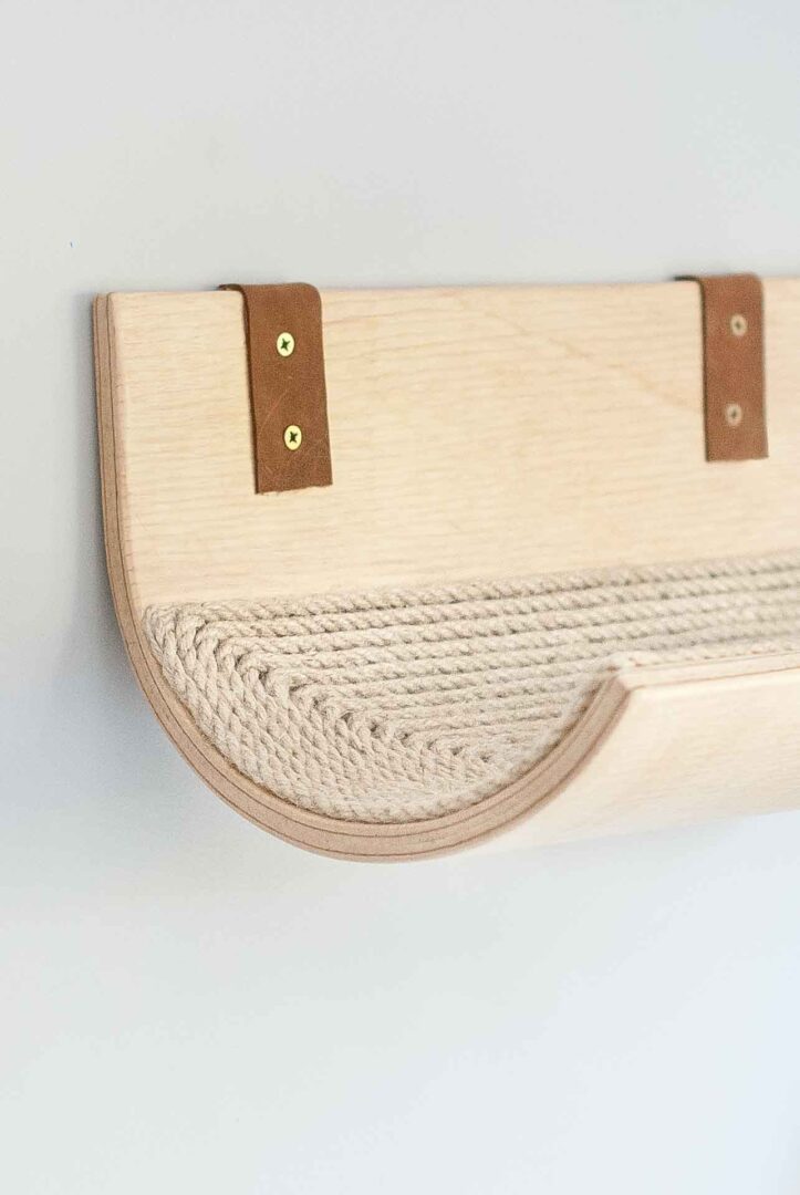 Półka do leżenia dla kota została oklejona liną sizalową. Ten naturalny materiał świetnie sprawdzi się jako drapak dla kota. Twój kot od razu po drzemce będzie mógł zacząć się przeciągać wbijając pazury w sizal, co pozytywnie wpłynie na kondycję twojego pupila. Gdy umieścisz legowiska dla kota na ścianie naprawdę wysoko, to tym bardziej zachęcisz go do korzystania z niego w ten sposób.