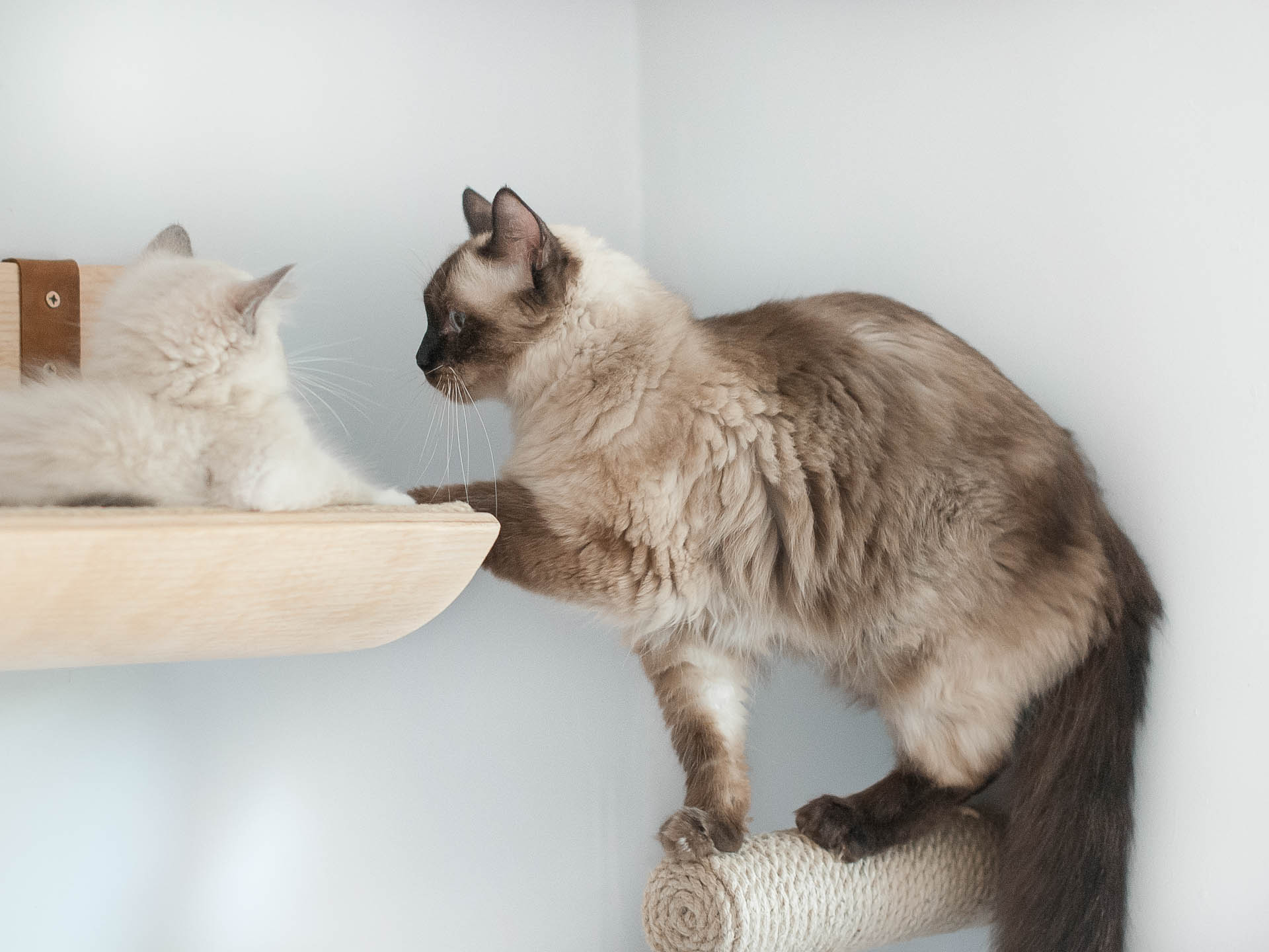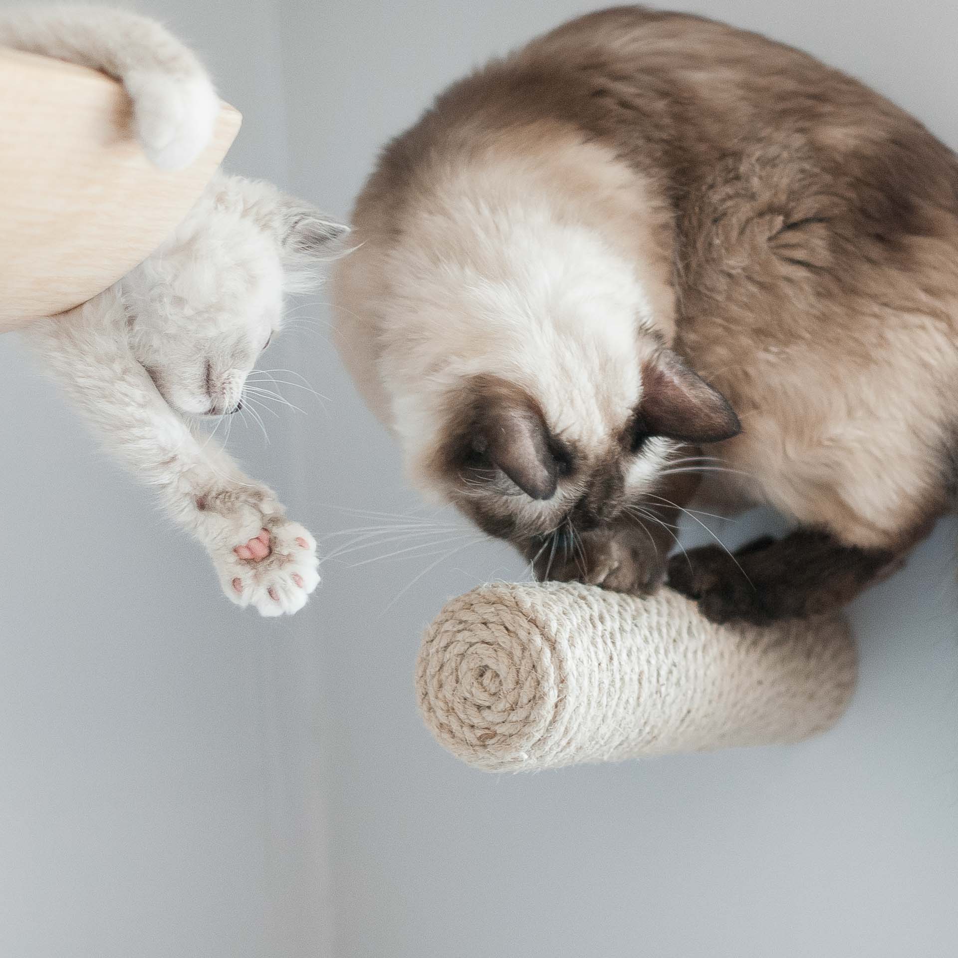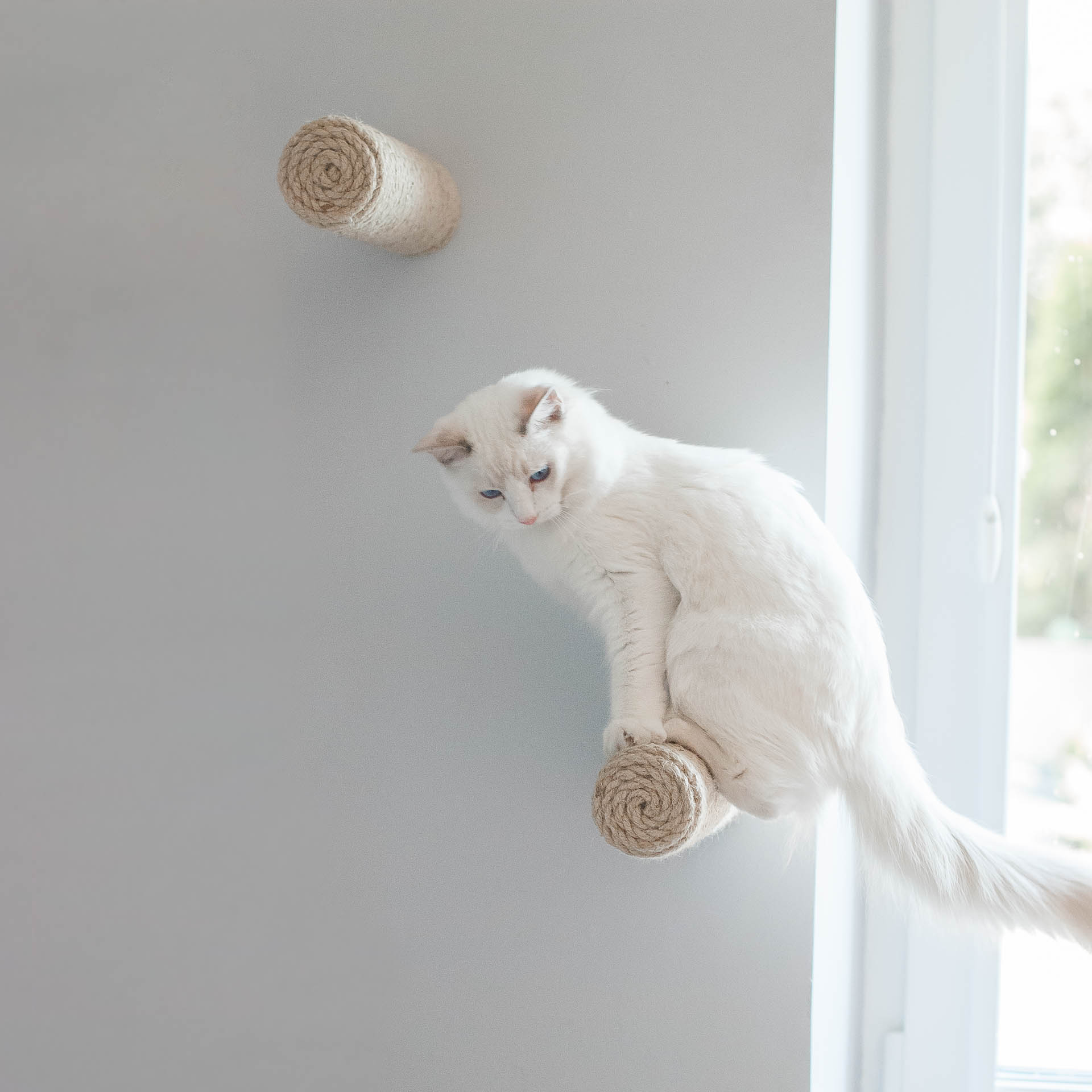 Sizalowe schodki to uniwersalny element kociej autostrady. Nawet jeżeli źle ocenisz odległość pomiędzy półkami i twój kot będzie miał kłopoty aby z nich korzystać – z pomocą przychodzi sizalowy schodek Kilig. Umieść go pomiędzy półkami i posłuży jako pojedynczy schodek dla kota. W połączeniu z półką LAGOM, która służy jako schodki dla kota w kierunku od lewej do prawej, schodek dla kota Kilig umieszczony nad półką dodaje dodatkowy kierunek wspinania się, czyli od prawej do lewej. Jeżeli brakuje ci wizji jak zagospodarować przestrzeń na ścianie, aby koty chętnie z niej korzystały – napisz do nas wiadomość, chętnie ci doradzimy.