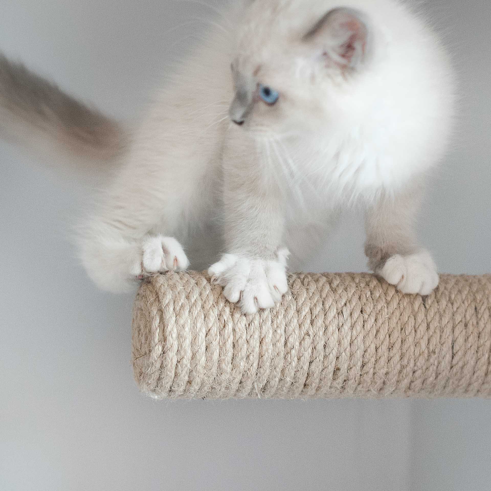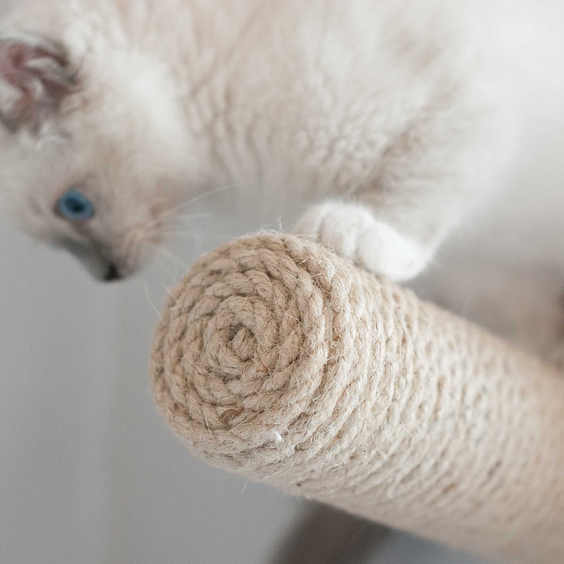 Ręcznie robiony mebel dla kota to gwarancja trwałości i bezpieczeństwa. Każdy ze schodków jest pokryty przez Catelie grubą liną sizalową, która zapewni kotu dobrą przyczepność. Dzięki temu wspinaczka po schodkach dla kota będzie niezagrażająca dla zdrowia twojego pupila.